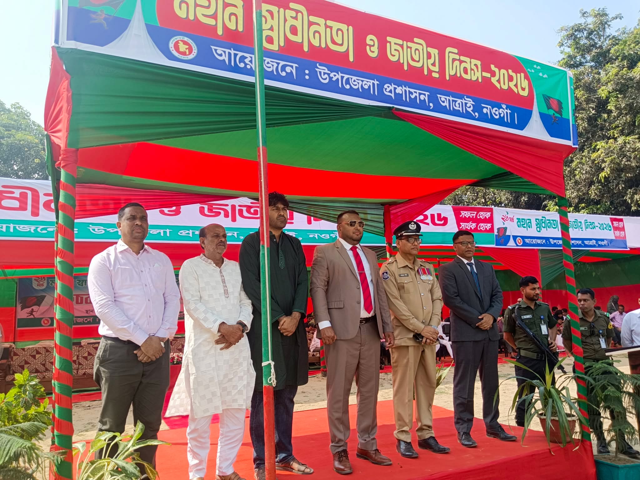 নওগাঁর আত্রাই উপজেলায় যথাযোগ্য মর্যাদায় মহান স্বাধীনতা ও জাতীয় দিবস উদযাপন করা হয়েছে।(২৬ মার্চ) উপজেলা প্রশাসনের আয়োজনে নানা কর্মসূচির মধ্যদিয়ে দিবসটি পালন করা হয়। সূর্যোদয়ের সাথে সাথে ৩১ বার তোপধ্বনির মাধ্যমে দিবসের শুভ সূচনা করা হয়। এরপর উপজেলা কেন্দ্রীয় শহীদ মিনারে পুষ্পস্তবক অর্পণ করা হয়। এতে উপজেলা প্রশাসন,থানাপুলিশ,মুক্তিযোদ্ধা সংসদ,উপজেলা বিএনপি,বাংলাদেশ জামায়াতে ইসলামী,বিভিন্ন শিক্ষা প্রতিষ্ঠান, সামাজিক ও সাংস্কৃতিকসহ বিভিন্ন সংগঠন পুস্পস্তবক অর্পণ করে।এর পর বেলা ১০টায় উপজেলা পরিষদ মাঠে বেলুন ও পায়রা উড়িয়ে দিবসের কুচকাওয়াজ অনুষ্ঠান অনুষ্ঠিত হয়। উপজেলা নির্বাহী কর্মকর্তা শেখ মো.আলাউল ইসলামের সভাপতিত্বে অনুষ্ঠানে প্রধান অতিথি হিসেবে উপস্থিত ছিলেন, নওগাঁ-৬ (আত্রাই-রাণীনগর) আসনের সংসদ সদস্য শেখ মো.রেজাউল ইসলাম রেজু। এ ছাড়া উপজেলা কমিশনার (ভূমি) নুরে আলম সিদ্দিক, ওসি আব্দুল করিম,উপজেলা বিএনপির সিনিয়র সহ-সভাপতি মো.আব্দুল জলিল চকলেট, সহ সভাপতি মো.সাইফুল ইসলাম মৃধা,সাধারণ সম্পাদক মো.তসলিম উদ্দিন,সিনিয়র যুগ্ম সম্পাদক মো.আব্দুল মান্নান সরদার,সাংগঠনিক সম্পাদক কামরুল হাসান সাগর, দপ্তর সম্পাদকহাফিজুর রহমান ,প্রচার ওপ্রকাশনা সম্পাদক জাহিদুল ইসলাম , যুব দলের সিনিয়র আহ্বায়ক মো খোরশেদ আলম,আশরাফুল ইসলাম লিটন,স্বেচ্ছাসেবক দলের আহ্বায়ক মো.আজাদ আলী,ছাত্র দলের যুগ্ম আহ্বায়ক মো.শাহরিয়ার সরদার সৌরভ,পাঁচুপুর ইউনিয়ন বিএনপির সভাপতি মো.নিয়ামত আলী বাবু। কৃষি কর্মকর্তা কৃষিবিদ প্রসেনজিৎ তালুকদার, প্রাথমিক শিক্ষা কর্মকর্তা মাযহারুল ইমলাম, সমাজসেবা কর্মকর্তা সোহেল রানা, যুব উন্নয়ন অফিসার এস এম নাসির উদ্দিন, প্রতিবন্ধী বিষয়ক কর্মকর্তা পিএম কামরুজ্জামান, সিনিয়র মৎস্য কর্মকর্তা মো. মাকসুদুর রহমান,উপজেলা স্বাস্থ্য ও পরিবার পরিকল্পনা কর্মকর্তা ডা. খায়রুল আলম,মুক্তিযোদ্ধা ওগণমাধ্যমকর্মীরাসহ আমন্ত্রিত অতিথিরা উপস্থিত ছিলেন।আলোচনা সভা শেষে বীর মুক্তিযোদ্ধাদের সংবর্ধনা দেওয়া হয়। মুক্তিযোদ্ধা বিষয়ক আবৃতি প্রতিযোগিতা ও পুরস্কার বিতরণ এবং উপজেলা স্বাস্থ্য কমপ্লেক্সে উন্নত খাবার পরিবেশন করা হয়।
