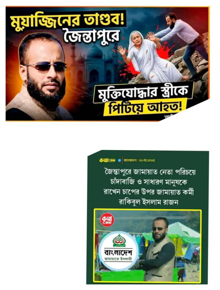 সিলেট জৈন্তাপুর মডেল মসজিদের মোয়াজ্জিন রাকিবুল ইসলাম রাজনের অত্যাচারে অতিষ্ট গ্রামবাসী ও গ্রামের সাধারণত মানুষ। বিভিন্ন অপরাধের সাথে জড়িত থেকে ও মিথ্যার আশ্রয় নিয়ে এবং তার বিরুদ্ধে দায়েরকৃত বিভিন্ন মামলা গোপন রেখে জৈন্তাপুর মডেল মসজিদের মুয়াজ্জিন হিসাবে দায়িত্ব নেয়। পরে সে যে বিভিন্ন চাদাবাজি, মামলা হামলার এবং অন্যর জমি দখলের সাথে জড়িত রয়েছে তার সকল প্রমাণ পেয়ে স্থানীয় মুসল্লীগন, মুয়াজ্জিন রাকিবুল ইসলাম রাজনের বিরুদ্ধে জৈন্তাপুর উপজেলা নির্বাহী কর্মকর্তা বরাবরে একটি অভিযোগ দাখিল করেন।